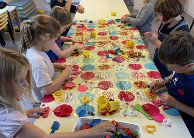 Le choix de la dernière semaine a été de laisser les enfants être maîtres de leur programme avec des cartes à idées. Le principe était simple : chaque matin, les différents groupes avaient le choix entre un panel de cartes (cuisine, peinture, grand jeu, sport, activité manuelle, construction, chasse au trésor, lecture, modelage, manipulation, balade, jeux extérieurs, jeux libres…). Pour chaque carte, les animatrices avaient anticipé et prévu des activités associées. Les enfants pouvaient alors décider le programme de leur journée.