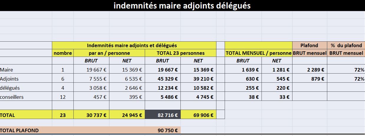Conformément à la réglementation en vigueur, le Conseil a délibéré sur l’enveloppe globale consacrée aux indemnités de fonction. Pour l’année à venir, le montant total sera de 82 716 € (le maximum autorisé par la loi est de à 90 750 €).