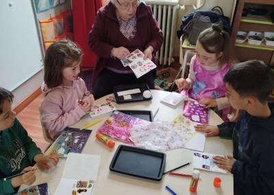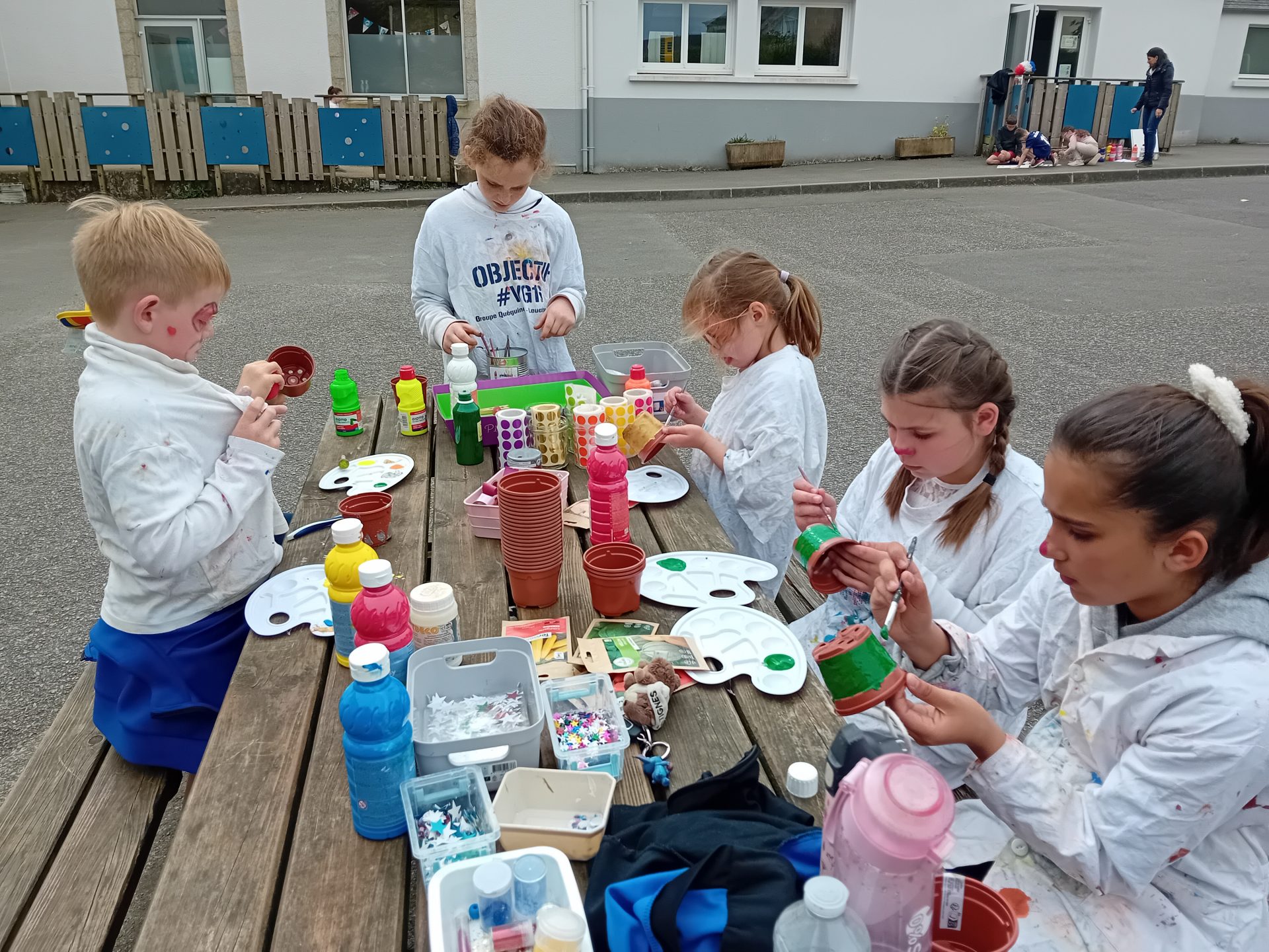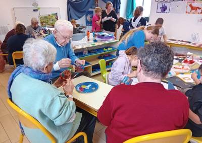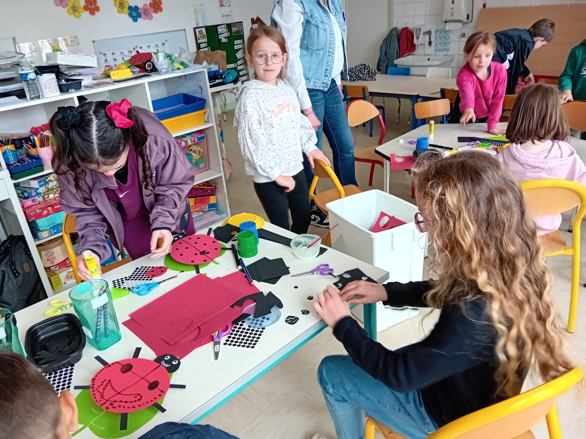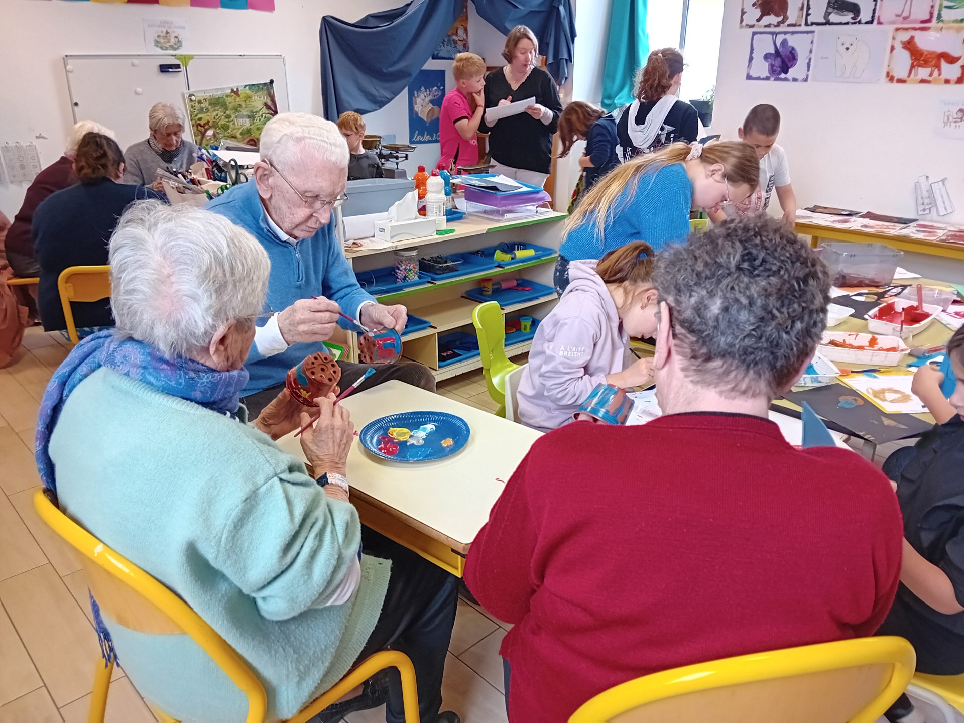 L’après-midi s’est poursuivie autour du thème du printemps, avec des ateliers partagés entre élèves. Quelques parents ainsi que des résidents d’Âge et Vie ont également participé à ce moment convivial, pour le plus grand plaisir des enfants.