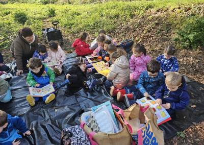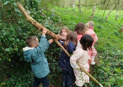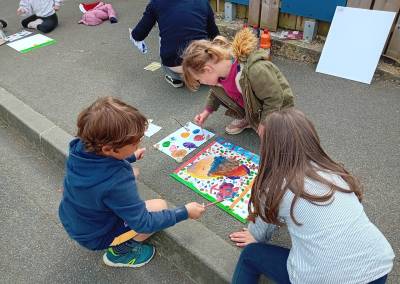Suite à une formation suivie en début d’année par les enseignantes, des séances d’apprentissage en extérieur ont été mises en place. Ces temps permettent aux élèves de travailler autrement, de développer de nouvelles compétences et de renforcer la coopération entre pairs dans un cadre différent de la classe.