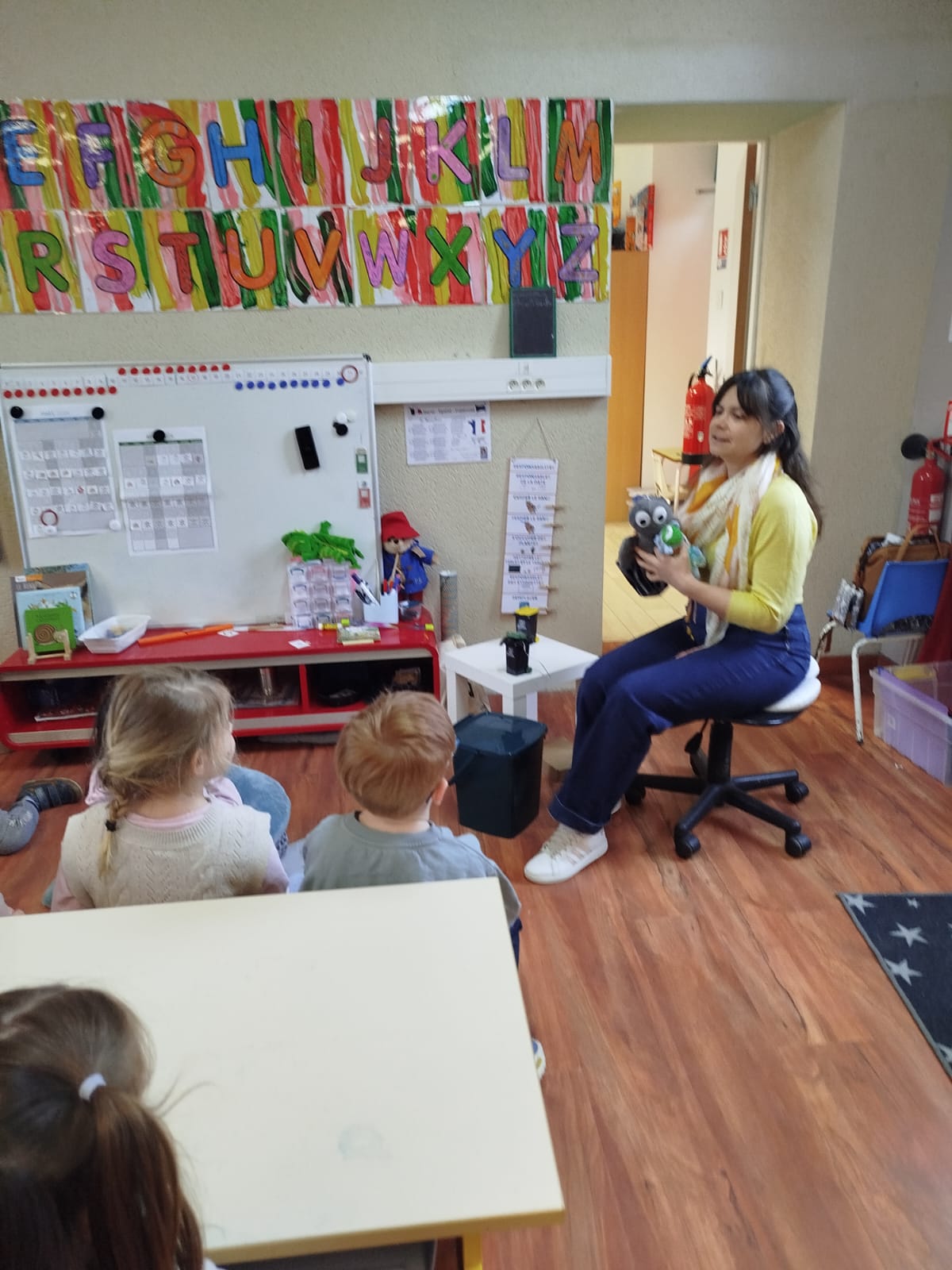 Le projet d’année autour du livre s’est également poursuivi. Les élèves de TPS, PS et MS ont exploré l’album Un peu perdu, apprenant progressivement à le raconter. Dans les autres classes, les élèves se sont plongés dans l’univers de la poésie, à la découverte des rimes et du plaisir des mots.